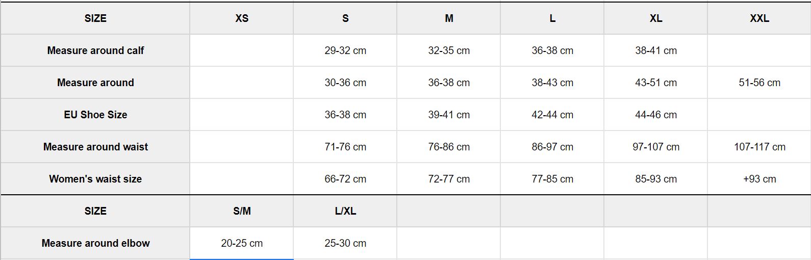 Sizeguide (measure around the elbow in cm):